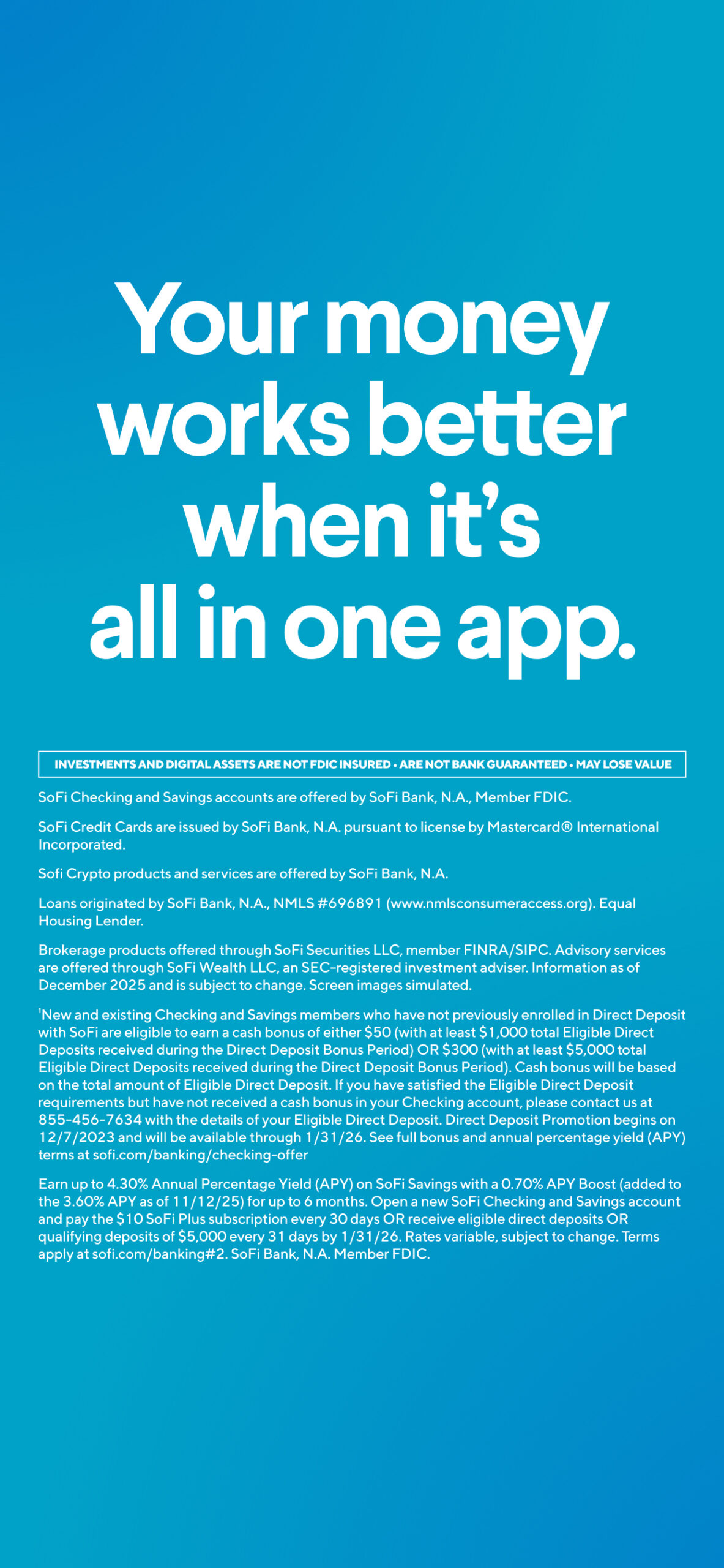 SoFi is an all-in-one financial services platform operating at national scale. I currently lead creative direction for its App Store presence, shaping how millions of prospective users encounter the brand at the most critical conversion surface: before download.